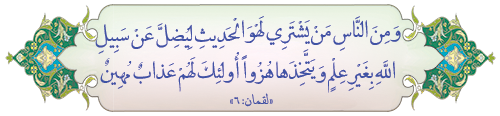 (و برخى از مردم، خريدار سخنان بيهوده و سرگرم كننده اند، تا بى هيچ علمى، (ديگران را) از راه خدا گمراه كنند و آن را به مسخره گيرند؛ آنان برايشان عذابى خوار كننده است)